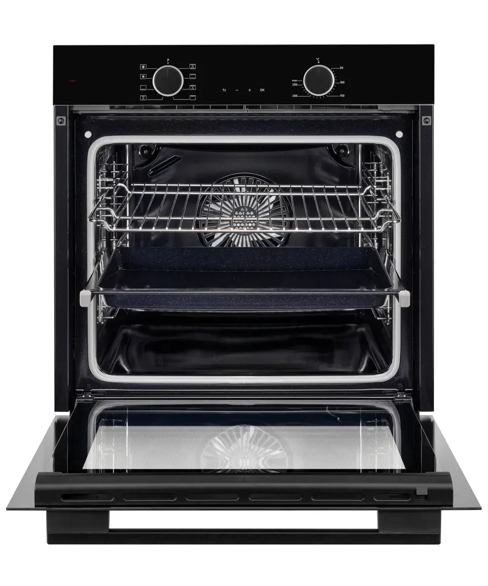 1. Первое внутреннее стекло Low-E - Стекло которое не выпускает тепловую энергию и является атермальным, благодаря чему, часть тепла возвращается обратно в камеру духовки, ускоряя нагревание, поддерживая нужный температурный уровень и оказывая содействие процессу приготовления блюд.
