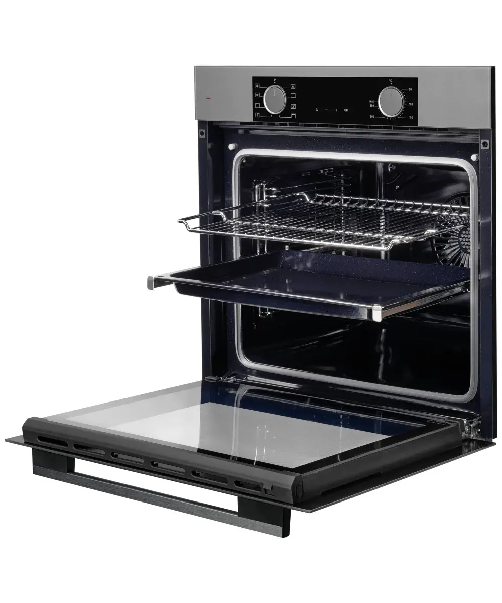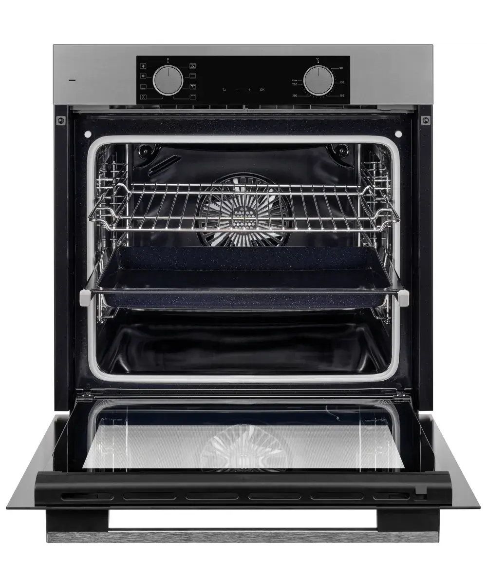 1. Первое внутреннее стекло Low-E - Стекло которое не выпускает тепловую энергию и является атермальным, благодаря чему, часть тепла возвращается обратно в камеру духовки, ускоряя нагревание, поддерживая нужный температурный уровень и оказывая содействие процессу приготовления блюд.